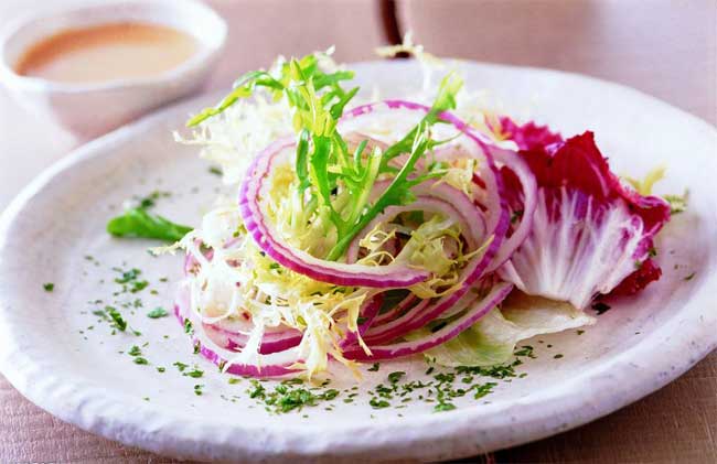 洋葱所含的硫化物能预防动脉硬化和高血压,生吃效果更好,建议切薄片,做成蔬菜色拉吃。